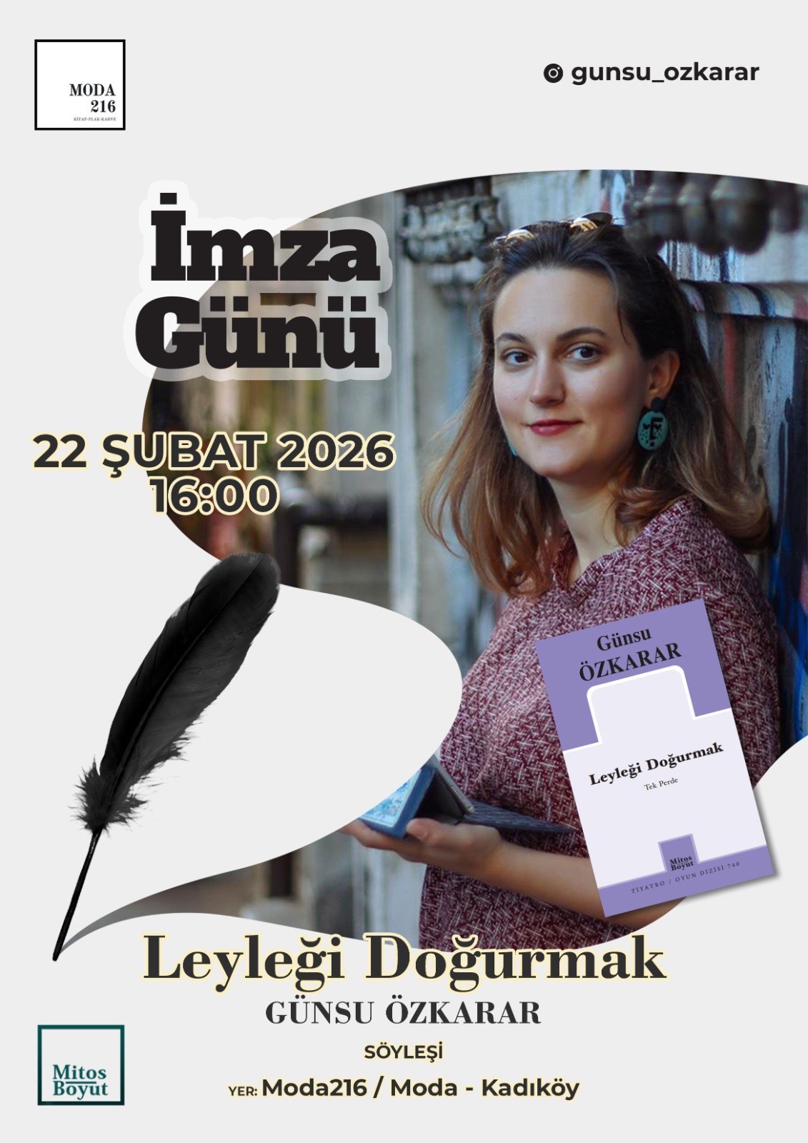 Günsu Özkarar son kitabı Leyleği Doğurmak adlı kitabıyla 22 Şubat’ta Moda 216’da okurlarıyla buluşuyor. Etkinlik 16.00’da başlayacak.