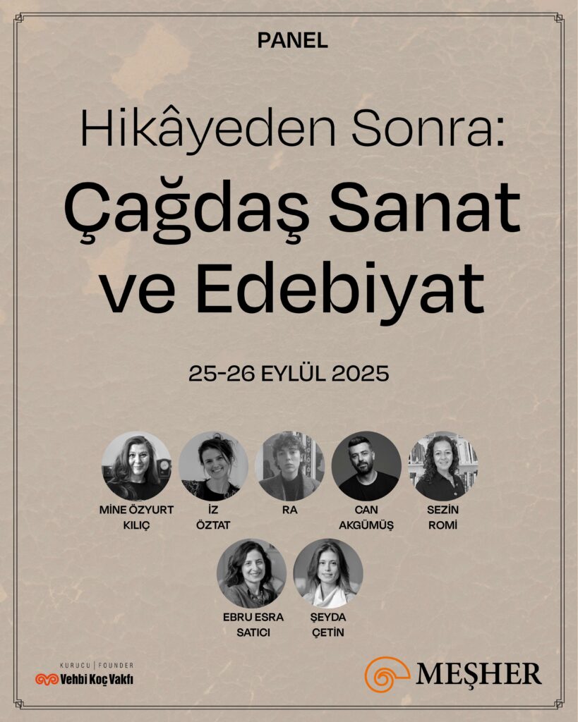 Meşher’de, 18.İstanbul Bienali’ne paralel olarak gerçekleştirilecek “Hikâyeden Sonra: Çağdaş Sanat ve Edebiyat” başlıklı etkinlik, Hikâye İstanbul’da Geçiyor sergisinde yer alan kitaplar ile çağdaş sanat alanında üretilen yapıtlar arasındaki diyaloglara odaklanacak. Meşher, 18. İstanbul Bienali paralelinde, 25–26 Eylül 2025 tarihlerinde “Hikâyeden Sonra: Çağdaş Sanat ve Edebiyat” başlıklı bir etkinlik serisi düzenleyecek.