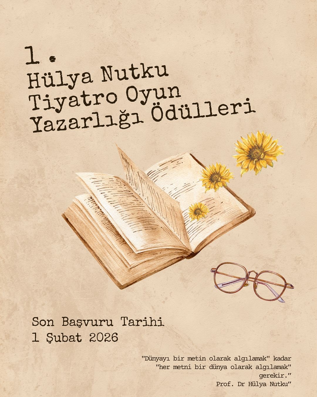 1. Hülya Nutku Tiyatro Oyun Yazarlığı Ödülleri başvuruları açıldı. Yarışmaya son başvuru tarihi 1 Şubat 2026.