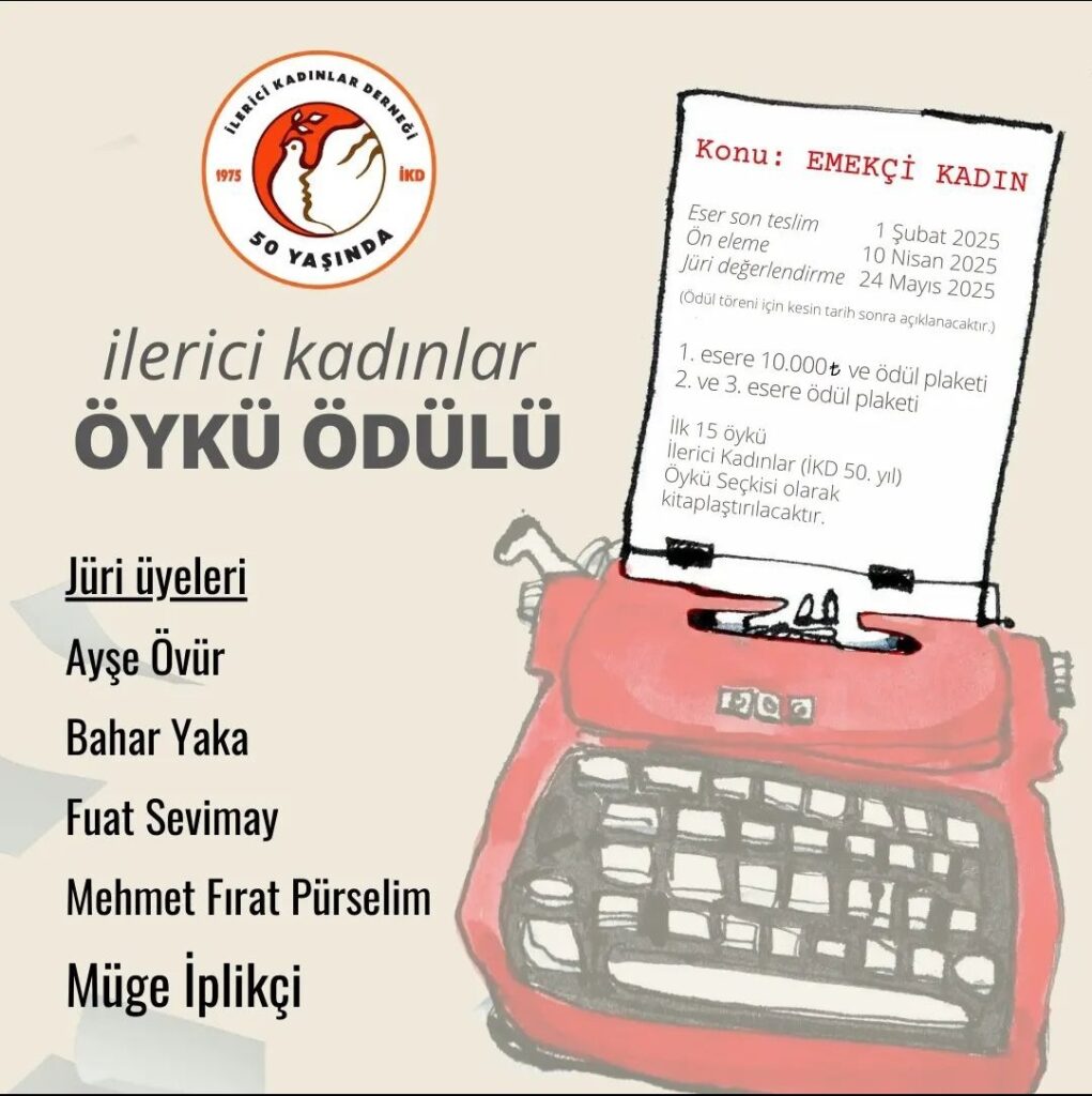 İlerici Kadınlar Derneği’nin kuruluşunun 50. yılında “Emekçi Kadın” konulu öykü yarışması düzenliyor. Yarışmaya katılım için 1 Şubat 2025 son tarih.