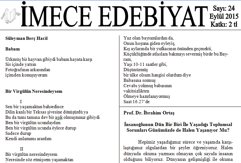 İmece Edebiyat Dergisi’nin 24. sayısı yayımlandı.