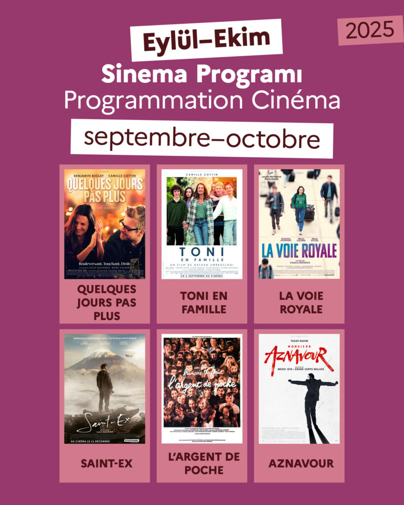 Institut français Türkiye – İstanbul Eylül-Ekim dönemi sinema programını açıkladı. Film gösterimleri 5 Eylül – 31 Ekim tarihleri arasında gerçekleşecek.
