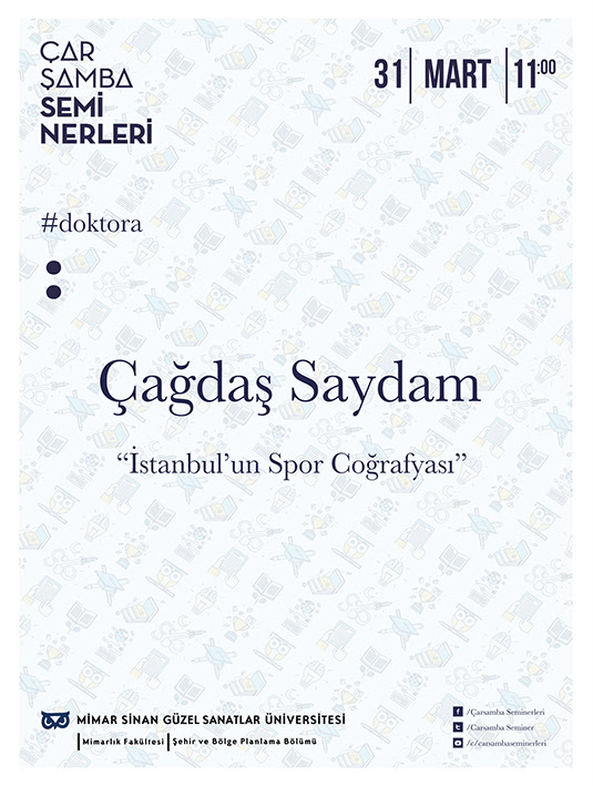 Çağdaş Saydam, 2004 yılında Mimar Sinan Güzel Sanatlar Üniversitesi (MSGSÜ) Mimarlık Bölümü’nden mezun oldu. Yüksek Lisans ve doktora eğitimini aynı üniversitenin Şehir ve Bölge Planlama Bölümü’nün lisansüstü programlarında tamamladı. Akademik hayatına da bu bölümde devam ediyor. Uzun yıllar aktif olarak sporun içerisinde yer aldı. 2001 ve 2017 senelerinde ülkemizde organize edilen Avrupa Basketbol Şampiyonası’nın ve 2010 senesinde yine ülkemizde düzenlenen Dünya Basketbol Şampiyonası’nın organizasyon ekibinde yer aldı. Spor tesislerinin projelendirilmesi süreçlerinde mimarlık ofislerine danışmanlık yaptı. Spor yapılarının tasarımında temel yaklaşımlar ve spor tesislerinin yer seçimi konularında çeşitli üniversitelerde seminerler verdi. Konuğumuzun “İstanbul’un Spor Coğrafyası” başlıklı sunumunun tanıtım metninden:
