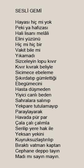 İşte İsmet Özel’in son şiiri Temmuz 16, 2013 yazar admin İsmet Özel, başkanlığını yaptığı İstiklal Marşı Derneği’nin sayfasından son şiirini yazdığını açıkladı. İşte Özel’in son şiiri: edebiyathaber.net (16 Temmuz 2013) İzlerin Peşinden ve derinlikte mana | Meliha YıldırımBüyük ustalar Yeni Film'deYazarın Odası: Çiğdem Sezer | Meltem DağcıRandevu İstanbul Uluslararası Film Festivali 16 Aralık'ta başlıyorVince Flynn hayatını kaybettiEylem Hatice Bayar: “Kitaplara ücretsiz erişim okur açısından harika bir şey.”