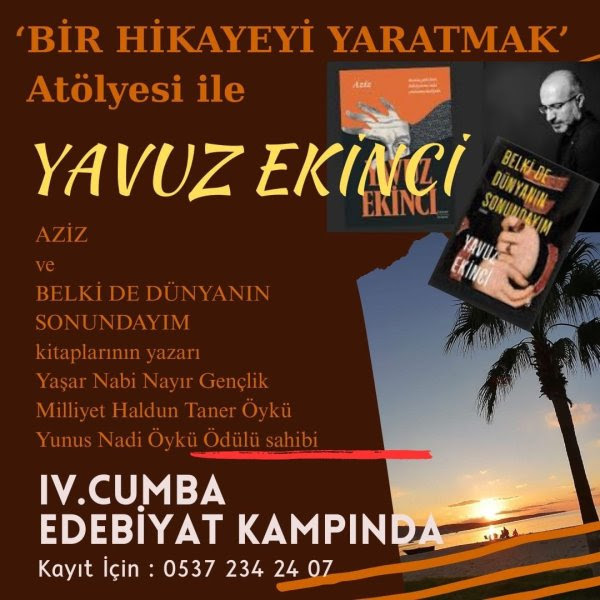 “Aziz” ve “Belki de Dünyanın Sonundayım” kitaplarının ödüllü yazarı Yavuz Ekinci, Cumba Edebiyat Kampı’nın sonbahar buluşmasında olacak.