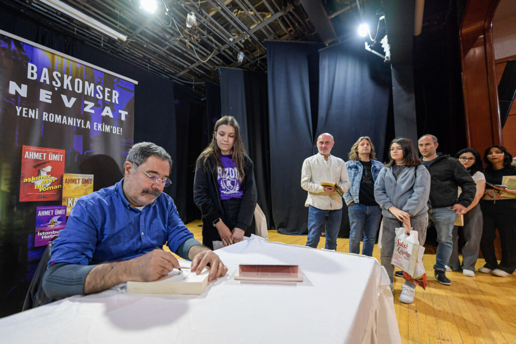 İzkitapfest’te okurlarıyla buluşan onur konuğu Ahmet Ümit, Başkomser Nevzat karakterini ve yeni kitabını anlattığı söyleşinin ardından kitaplarını imzaladı. Ümit; yazmanın bir yolculuk olduğunu belirterek, “Romanlarda sadece ilginç olaylar değil ilginç karakterler olmalıdır. Düşünün ki hiç olmayan bir tarih profesörü ya da Hititler döneminde yaşamış bir kadın karakter yaratıyorsunuz. Bir insanı, ilişkileri, duyguları ile anlatmak zor bir yolculuktur. Her kitapta aynı karakteri yazmak kolaycılıktır. Başkomser Nevzat karakterine kadar yazdığım romanlarda karakterler hep farklıydı, ancak bir gazetenin arka sayfasında adını Başkomser Nevzat olarak belirlediğimiz karakter polisiye hikayelerle okuyucuların hayatına girdi. Sonra okuyucu Nevzat’ı çok sevdi. Ayrıca Başkomser Nevzat karakteri televizyonda yayınlanan ve çok beğenilen Arka Sokaklar adlı diziye de ilham kaynağı olmuştur. Toplam olarak çizgi romanlarla beraber 28 kitap var bunların 10 tanesinde Nevzat var. Yeni yazdığım kitapta Nevzat’ın hiç bilmediğiniz yönleriyle okuyacaksınız. Bu kitabı önümüzdeki Ekim ayında çıkaracağız ve imza etkinliğini de fuarizmir’de gerçekleşecek olan İzmir Kitap Fuarı’nda yapacağız” dedi.
