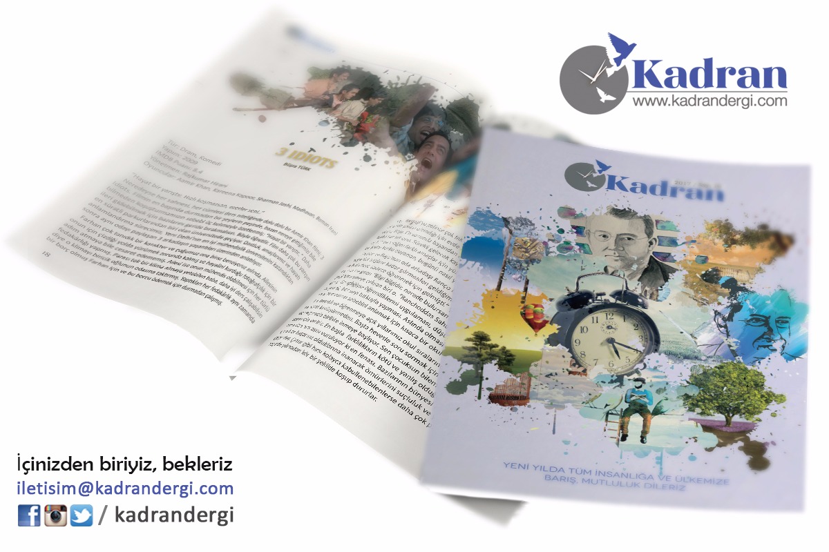 Bir grup genç şair ve yazar tarafından aylık olarak çıkartılan dergi sanattan kültüre, sinemadan eğitime birçok alana ışık tutuyor. “İçinizden biriyiz, bekleriz.” sloganıyla yola çıkan Kadran Dergi, genç kadrosu ve hoş tasarımıyla raflarda.