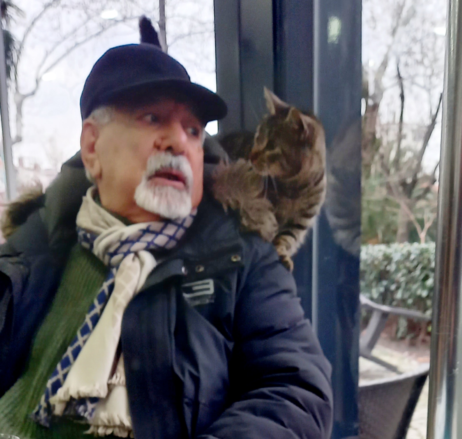 O gelince, Yoğurtçu Parkındaki kediler bayram ediyor. Oturduğumuz kafede, Necati Güngör’ün ayaklarının dibinden ayrılmayan hatta papağan gibi omzunda gezinen kediler, mırıl mırıl sesler çıkarıyor. Kim bilir belki de, “Hoş geldin Necati Amca” diyorlar. Necati Güngör onlara karşı hep kibardır, asla kaba davranmaz. Nadiren, “İn aşağıya çocuk” sözlerini duyarız. “Her kedi bir sanat eseridir” diye boşuna söylememiş Leonardo de Vinci.