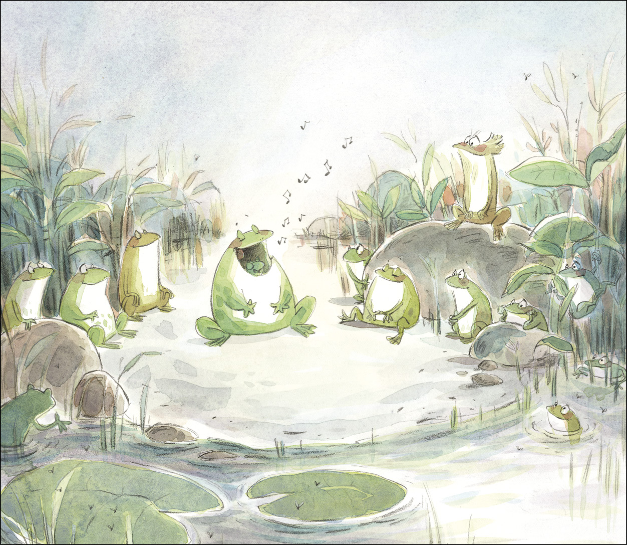 Luc Foccroulle’ün yazıp Annick Masson’un resimlediği Kurbağa Korosu; dayanışma, farklılıklar, önyargılar ve yetenek üstüne yüreklendirici bir öykü.