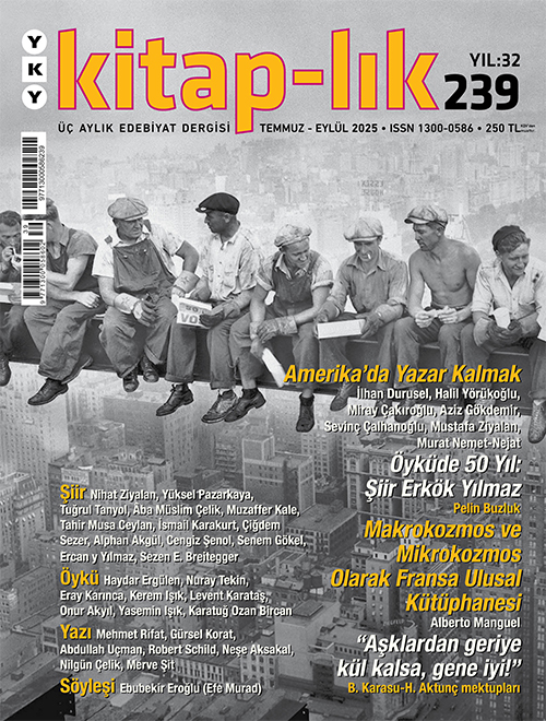 Üç aylık edebiyat dergisi kitap-lık’ın Temmuz-Eylül 2025 tarihli 239. sayısının dosya konusu Amerika’da Yazar Kalmak. İlhan Durusel’in hazırladığı dosyada Halil Yörükoğlu, Miray Çakıroğlu, Aziz Gökdemir, Sevinç Çalhanoğlu, Mustafa Ziyalan, Murat Nemet-Nejat ve İlhan Durusel Amerika’da yaşayıp yazmanın anlamını ve özel durumlarını anlattılar.