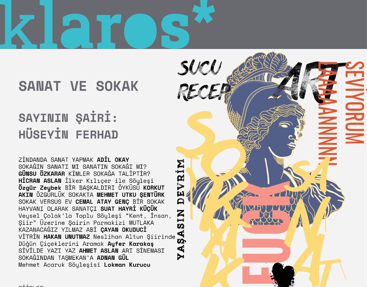 Hayatın içinden bir dergi olan Klaros’un yeni sayısında, hayatın ve sokağın içinden bir konu, “Sokak ve Sanat” konusu ele alınıyor. 1980 Kuşağı’nın sıkı şairi Hüseyin Ferhad da ‘Klaros kalemleri’ aracılığıyla mercek altında…