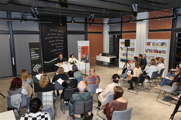 Koza Kütüphane’de gerçekleşen etkinlikte Türker, yazar Hakan Akdoğan’ın moderatörlüğünde “Kadın Cinayetleri Çağında Roman: Tanıklığın Etiği” başlıklı bir söyleşi gerçekleştirdi.