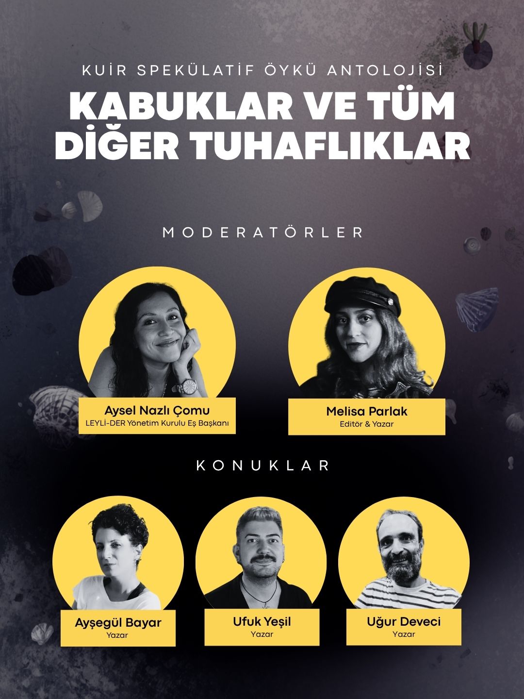Söyleşi, Leyli Sanat Derneği Yönetim Kurulu Eş Başkanı Aysel Nazlı Çomu ve editörlerden Melisa Parlak’ın eş moderatörlüğünde düzenlenecek. Etkinlikte, yazarlar Ayşegül Bayar, Ufuk Yeşil ve Uğur Deveci okurlarla bir araya gelecek.