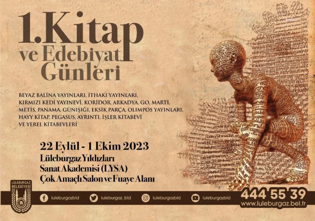 Lüleburgaz Belediyesi 22 Eylül ile 1 Ekim günleri arasında Lüleburgaz Yıldızları Sanat Akademisi’nde çok sayıda yazar ve yayınevinin yer alacağı Lüleburgaz 1. Kitap ve Edebiyat Günleri’ne ev sahipliği yapacak.