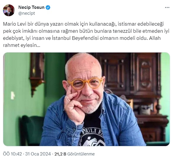 Mario Levi çok sevilen biriydi. Sadece iyi bir yazar olarak verdiği eserlerle değil kişiliğiyle de ne kadar çok sevilip sayıldığını vefatı ile bir kere daha gördük. Arkasından herkes iyi konuştu ki sosyal medya çağında bu çok önemli bir meziyettir bence.
