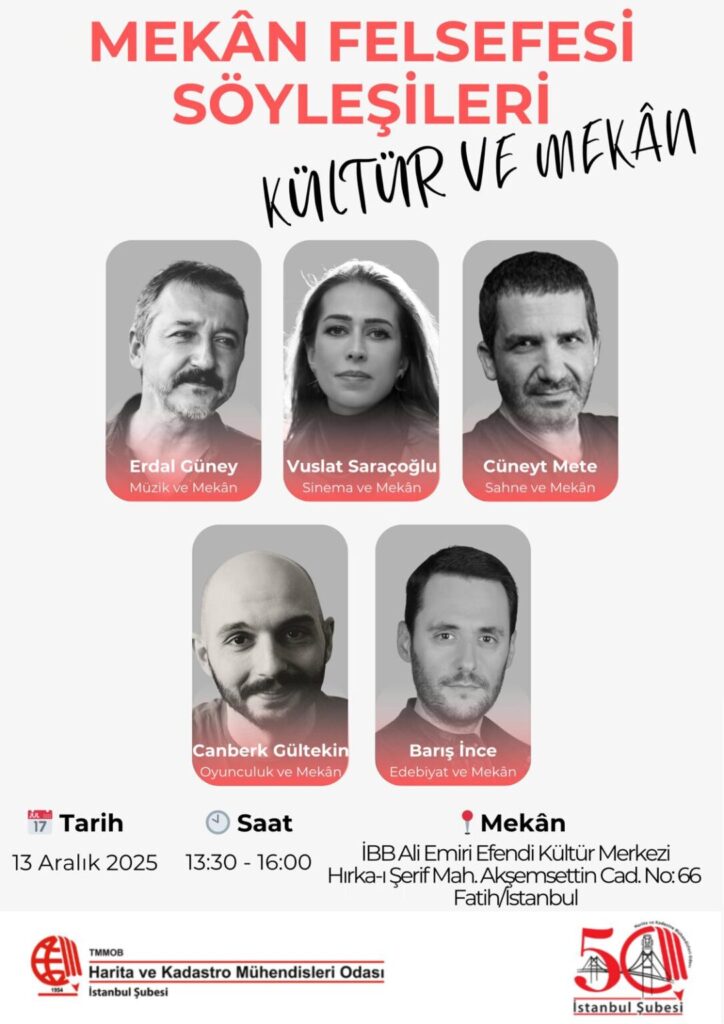 Harita Mühendisleri Odası’nın düzenlediği Mekân Felsefesi Söyleşileri 13 Aralık’ta 13.30’da BB Ali Emiri Efendi Kültür Merkezi gerçekleşecek.