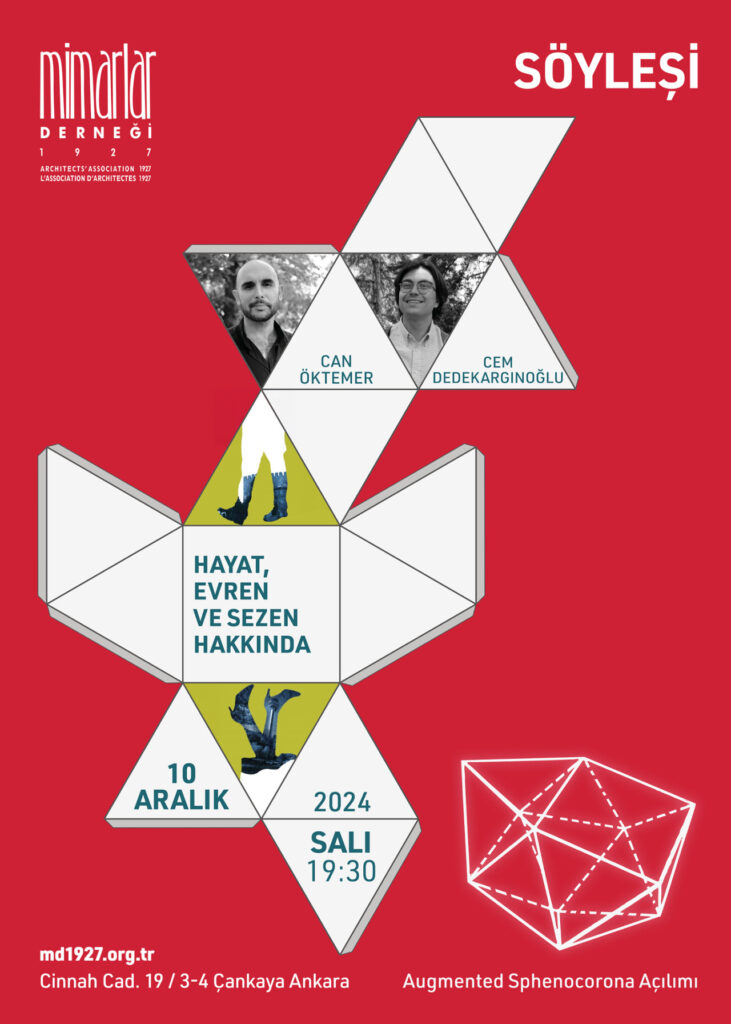 Can Öktemer ve Cem Dedekargınoğlu 10 Aralık’ta saat 19.30’da Mimarlar Derneği’nde Öktemer’in Haziran ayında yayımlanan Hayat, Evren ve Sezen Hakkında kitabı üzerine konuşacaklar.