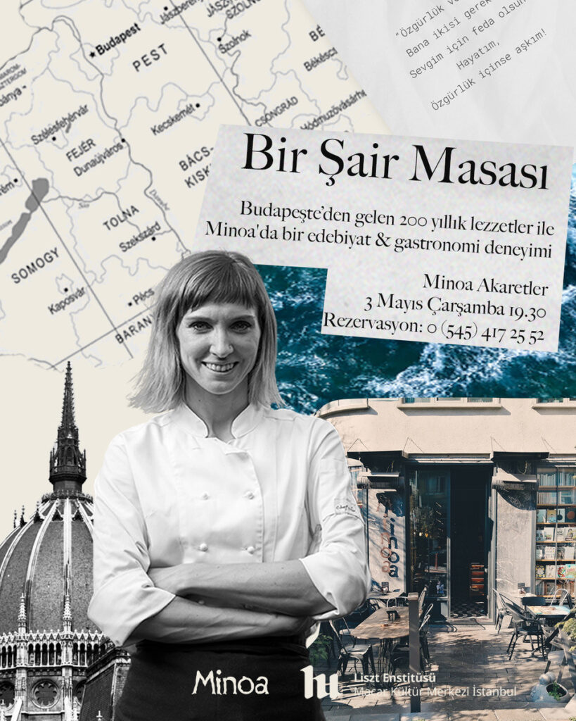 19. yüzyılın en büyük Macar şairi kabul edilen Sándor Petőfi’nin doğumunun 200. yılı şerefine, Minoa Kitabevi Akaretler’de bir edebiyat ve gastronomi gecesi düzenleniyor. 3 Mayıs Çarşamba akşamı Macar Kültür Merkezi’nin desteğiyle gerçekleştirecek “Bir Şair Masası”, konuk şef Ágnes Tóth’un geleneksel Macar lezzetlerini yorumladığı menüsüyle hazırlanacak.