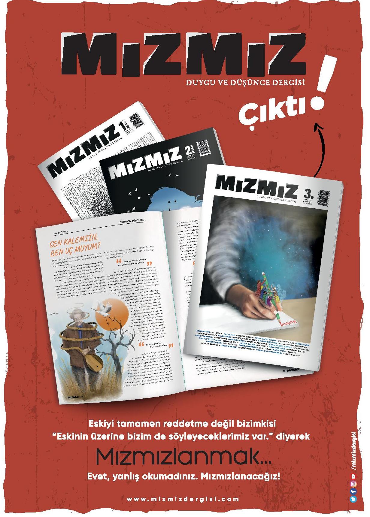 Aylık duygu ve düşünce dergisi Mızmız, üçüncü sayısında ‘’Korkma’’ kelimesiyle okurlarına sesleniyor. ‘’Korkma’’ kapak çalışmasıyla İstiklal Marşının 100. yıl dönümünü işleyen Mızmız, Serhat Demirel’in kaleme aldığı ‘’Üstatlar Konuşuyor’’ başlıklı yazısıyla Mehmet Akif Ersoy’la hayali bir söyleşiye imza atıyor. Sıddık Akbayır’ın ‘’Edebiyat Karın Doyurmaz Çay İçirir’’ isimli köşesinde Akif’in bilinmeyen yönlerini okura sunuyor.