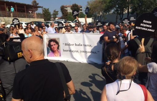 Aslı Erdoğan için buradayız. Bir buçuk ay önce Şebnem Korur Fincancı, Ali Nesin, Erol Önderoğlu için buradaydık. Devir teslim şeklinde geçen bir nöbet halindeyiz. Direnmeye devam ediyoruz. Gerçekleri haberleştirmeye Özgür Gündem’le de Aslı Erdoğan’la da dayanışmaya devam edeceğiz. Yazmaya devam edeceğiz.