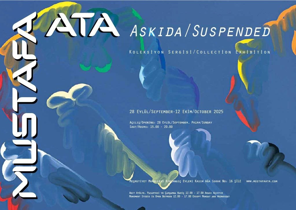 Ülkemizin büyük değerlerinden Mustafa Ata’nın “Askıda / Suspended” başlıklı koleksiyon sergisi, 28 Eylül – 12 Ekim 2025 tarihlerinde Şile’de yer alan Anıt Atölye’de pazartesi ve çarşamba hariç her gün 12.00 – 17.00 saatleri arasında ziyaret edilebilir.