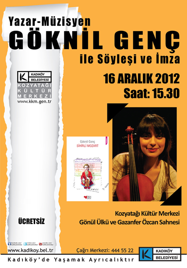 16 Aralık 2012 Pazar günü Can Çocuk‘un sevilen yazarlarından Göknil Genç‘in, özellikle klasik müzikle ilgili kitaplarından yola çıkarak yapacağı söyleşiye herkes davetli.