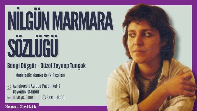 Bengi Düşgör ve Güzel Zeynep Tunçok’un kaleme aldığı ve Sanat Kritik Yayınları tarafından yayımlanan Nilgün Marmara Sözlüğü etrafında dönen etkinlik, 16 Mayıs’ta Aynalıgeçit Avrupa Pasajı’nda. Etkinlik saat 18.00’de Gamze Çelik Başaran moderatörlüğünde gerçekleşecek.