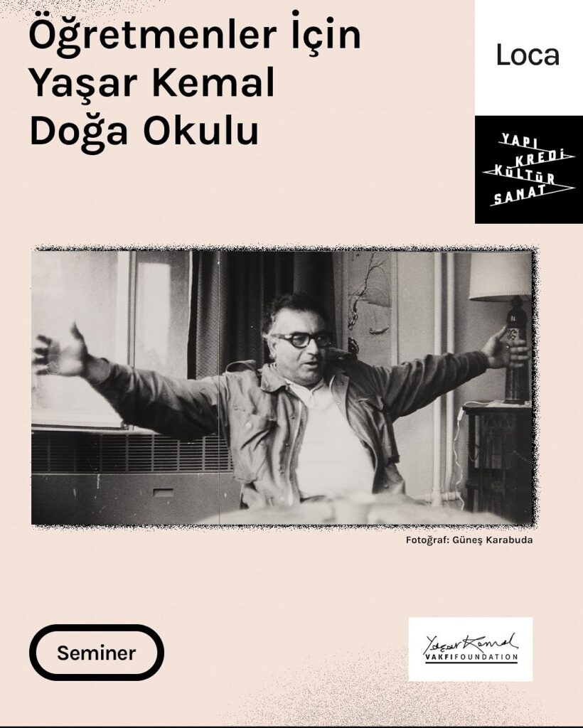Yaşar Kemal Vakfı ve Yapı Kredi Kültür Sanat Yayıncılık işbirliğiyle hazırlanan “Öğretmenler İçin Yaşar Kemal Doğa Okulu” Kasım’da başlıyor. 8 Kasım’dan itibaren dört cumartesi boyunca katılımcılarımızı Yaşar Kemal’in doğaya, doğa-insan ve doğa-toplum ilişkilerine bakışı üzerine düşünmeye teşvik eden seminerler, yaratıcı okuma atölyeleri, sanat söyleşileri, performans ve gösterimler bekliyor. Yapı Kredi Galeri’de devam eden, bitki ve hayvanların dünyasına, çevresel adaletsizliklere ve sömürüye odaklanan “Bir Arada: Gündüz Rüyaları/ Geyikli Gece” sergisi çerçevesinde öğretmenler için düzenlediğimiz etkinlikler de Yaşar Kemal Doğa Okulu’nun bir parçası oluyor. YKKSY Etkinlikler Yöneticisi Ahsen Erdoğan ve yaratıcı okuma atölyeleri alanında Türkiye’nin önde gelen ismi Çiğdem Odabaşı’nın koordinatörlüğünde hazırlanan Okulumuza edebiyat branşındakiler başta olmak üzere tüm öğretmenlerimiz, eğitimcilerimiz, kütüphanecilerimiz ve konuya ilgi duyan herkes davetlidir.