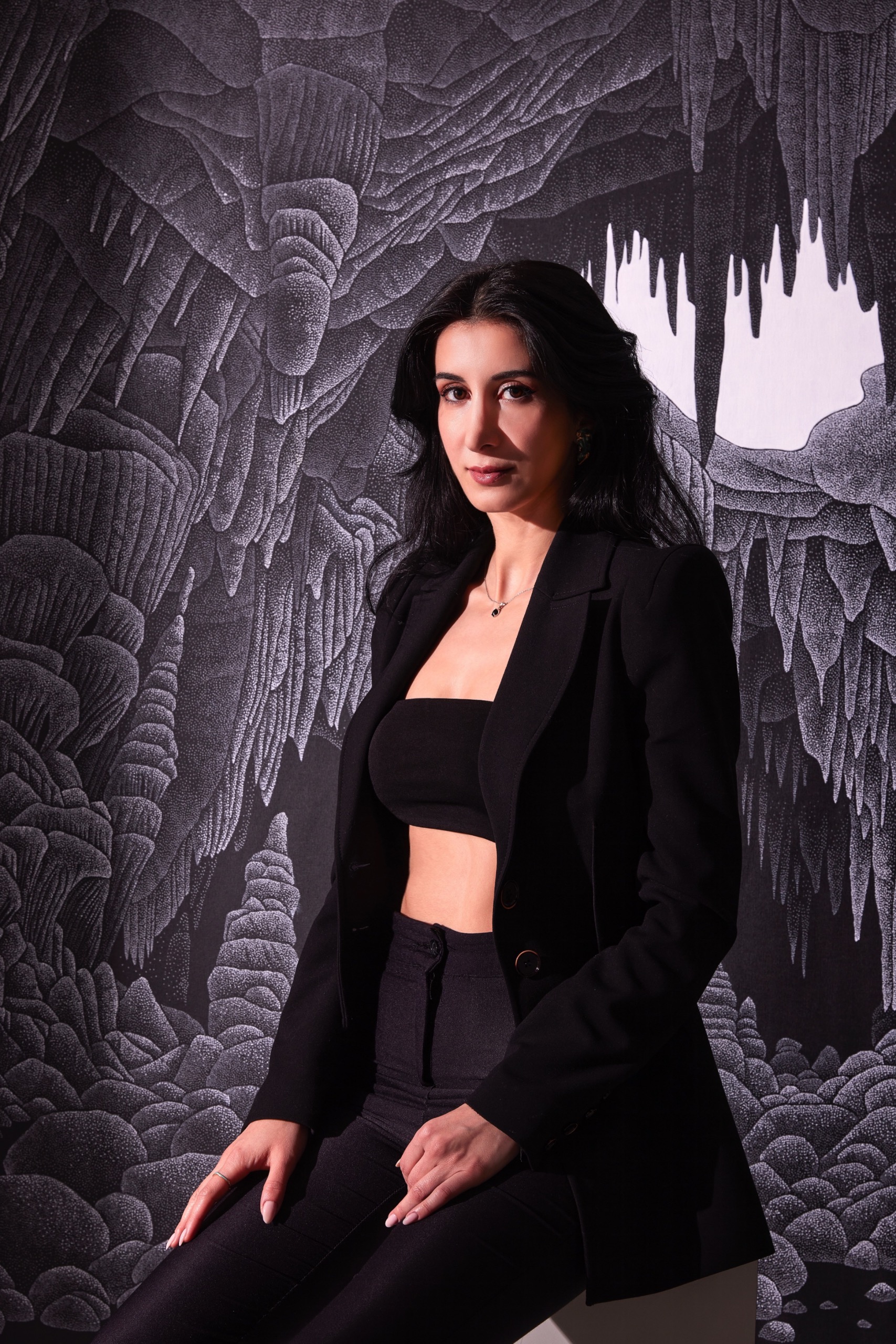 Özge Kahraman, yaklaşık on beş yıldır sürdürdüğü mağara araştırmaları aracılığıyla yeraltını yalnızca keşfedilen fiziksel bir alan olarak değil, varlığın başlangıcını düşünmeye açılan bir eşik olarak ele alır. Sanatçının üretimi, mağaralarda karşılaşılan oluşumları ve bu mekânların yarattığı deneyimi görsel bir dile dönüştürür. Noktalama tekniğiyle oluşturduğu yüzeylerde binlerce nokta bir araya gelerek mineral dokuları, taşın katmanlı yapısını ve zamanın tortulaşmasını çağrıştırır. Her bir nokta, dünyanın derinliklerinde gerçekleşen yavaş oluşum süreçlerinin küçük ama etkili bir izi gibi belirir. Bu nedenle sanatçının işleri, yalnızca bir mekânı temsil etmez; aynı zamanda arkhe kavramını, yani varlığın kökenine dair düşünceyi görünür kılmaya çalışır.