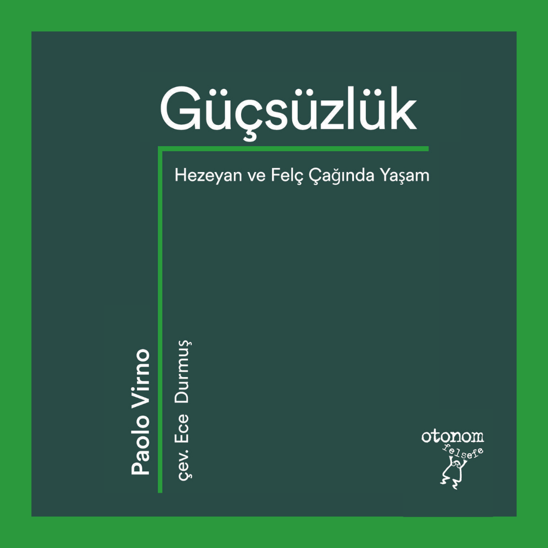 Paolo Virno’nun Güçsüzlük: Hezeyan ve Felç Çağında Yaşam adlı kitabı Otonom Yayınları’ndan Ece Durmuş çevirisiyle yayımlandı.