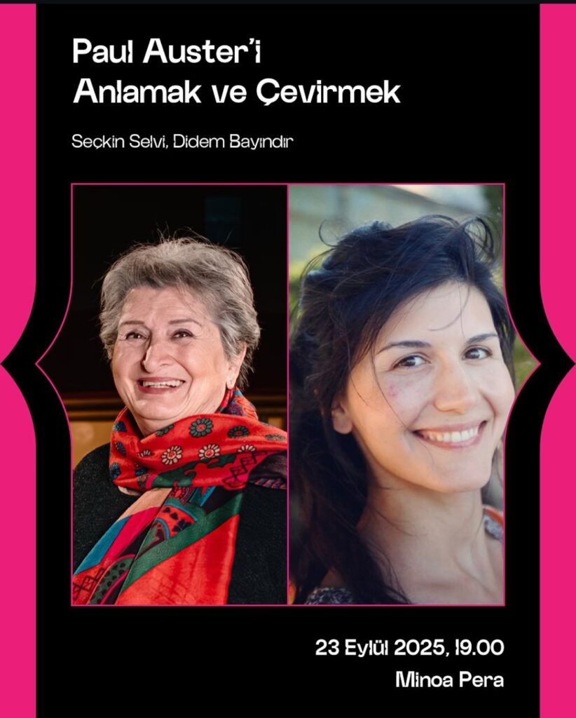 Seçkin Selvi ve Didem Bayındır, 29. Tiyatro Festivali kapsamında “Paul Auster’ı Anlamak ve Çevirmek” başlıklı söyleşiyle 23 Eylül’de Minoa Pera’da.