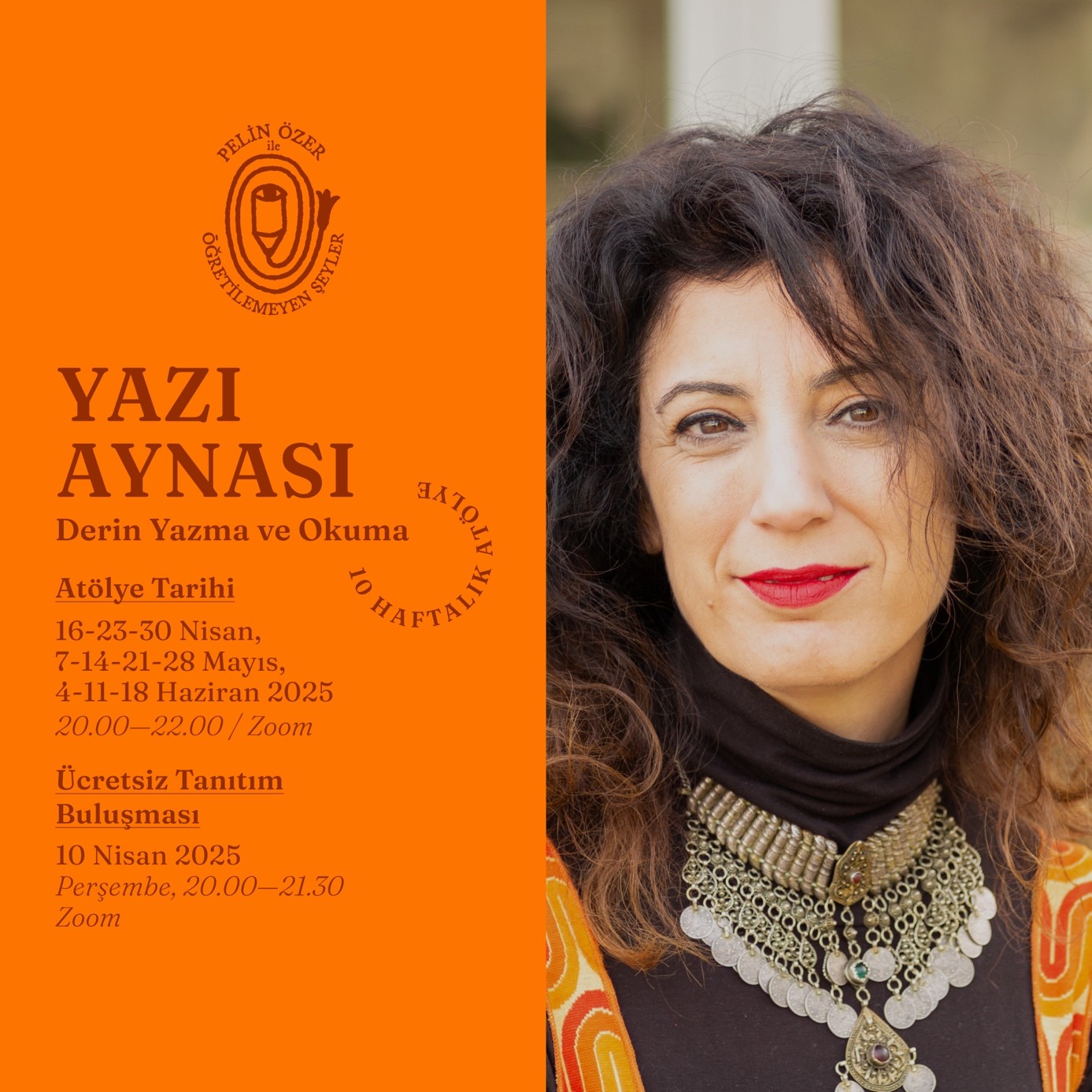 Pelin Özer ile Öğretilemeyen Şeyler Atölyeleri’nde yeni sezon başlıyor. “Yazı Aynası: Derin Yazma ve Okuma”nınson turu 16 Nisan’da başlacak. 18 Haziran’da sona erecek on haftalık atölye yazmaya ilgi duyan ve yazdıklarını editör gözüyle okumak isteyen herkese açık. Kontenjanı ise on beş kişiyle sınırlı. Atölye hakkında ayrıntılı bilgi almak isteyenler 10 Nisan Perşembe akşamı saat 20.00-21.30’da Zoom ekranına bekleniyor.