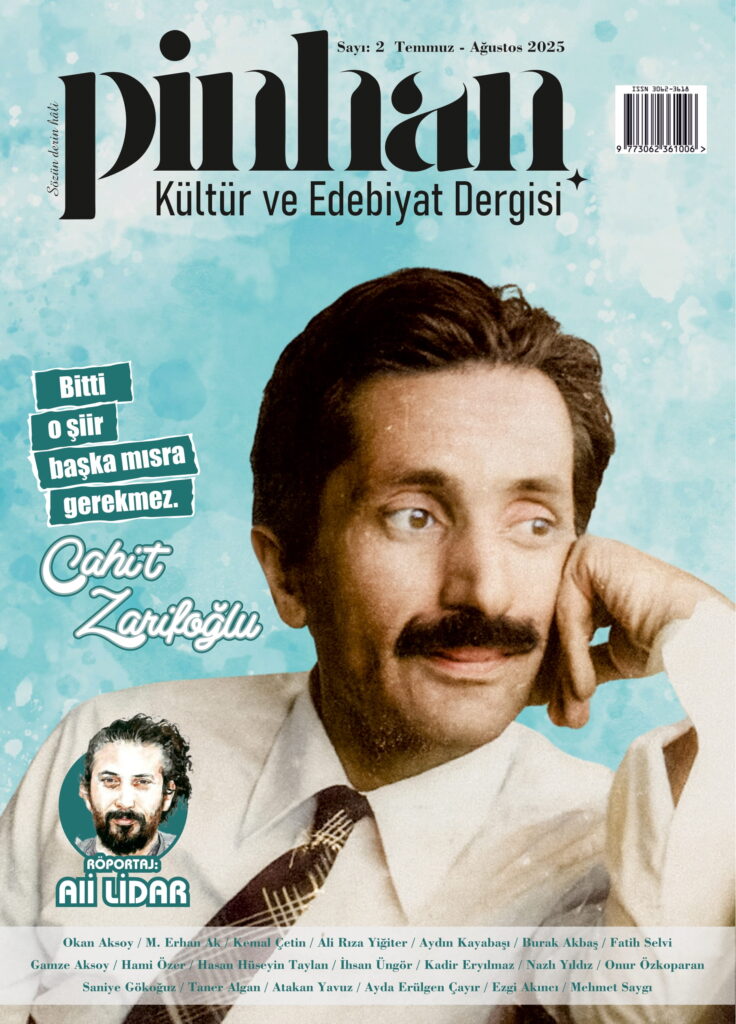 Görsel tasarımı ve içerik çeşitliliğiyle dikkat çeken Pinhan Kültür ve Edebiyat Dergisi, bu sayısında da öyküden şiire, denemeden söyleşiye kadar birçok farklı türü bir araya getiriyor. Bu sayının kapak konuğu: Cahit Zarifoğlu