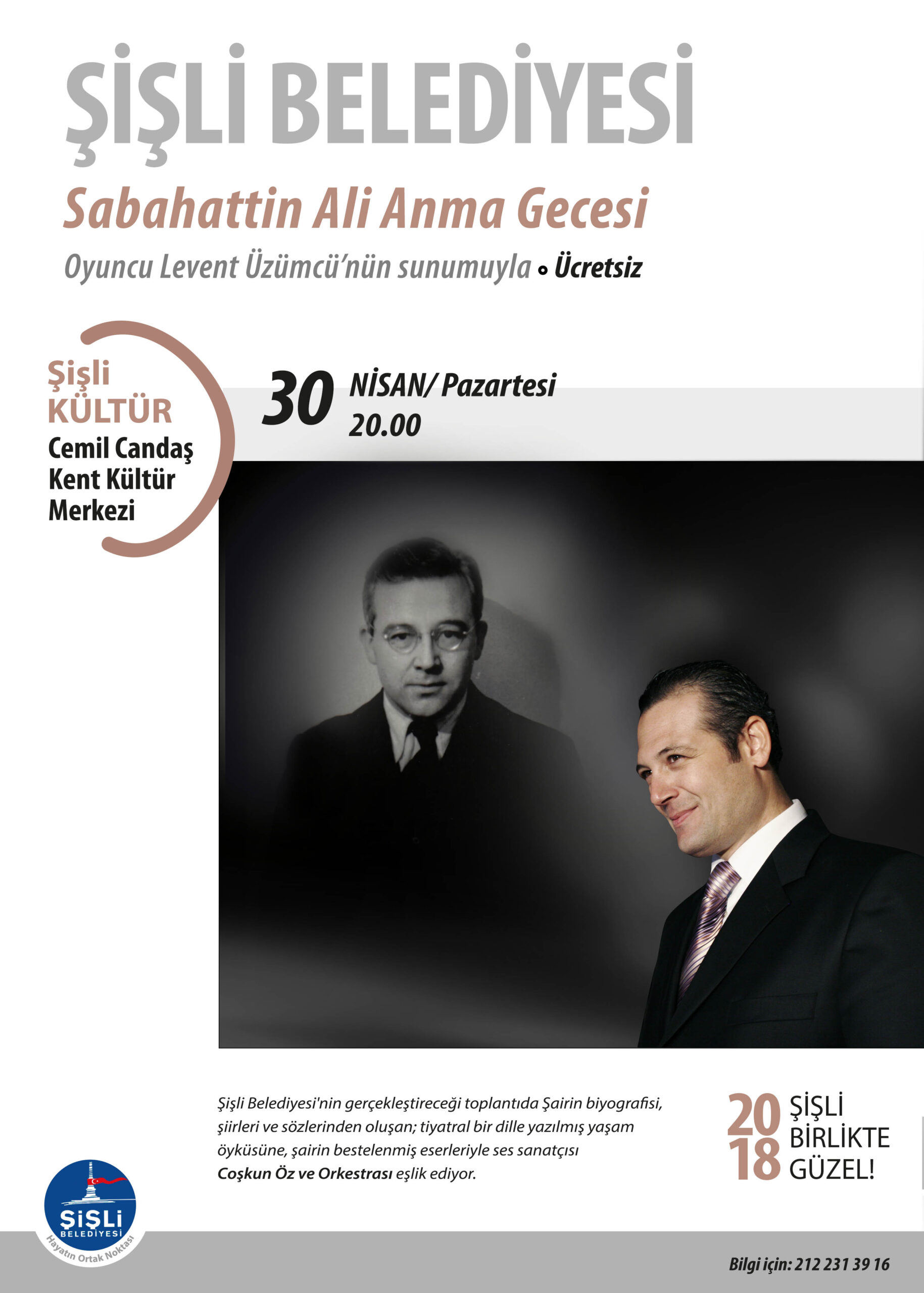 Her yaştan okuyucu tarafından çok sevilen “Kürk Mantolu Madonna” kitabının yanı sıra, şiirleriyle de Türk halkının gönlünde önemli bir yer edinen Sabahattin Ali’yi anma gecesine tüm Şişli halkı davetli.