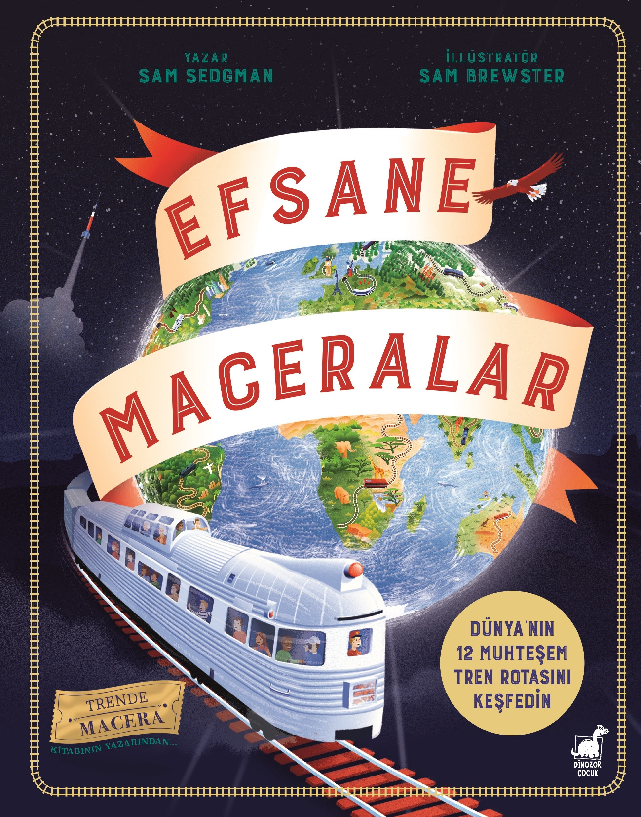 Dünyaca ünlü 12 tren rotasını, hikâyeleriyle ve hatların içinden geçtiği bölgelerin gelenekleri, kültürleri, yemekleri ve insanlarıyla bir bütün olarak keşfetmek için aile boyu bir maceraya hazır mısınız? Dinozor Çocuk’tan çıkan Efsane Maceralar, küçük-büyük tüm seyahat meraklılarını dünyanın dört bir yanına uzanan muhteşem bir keşif yolculuğuna davet ediyor. Kanada’dan ABD’ye, Güney Amerika’dan Afrika’ya ,Avrupa’dan Uzakdoğu’ya, Avusturalya’dan Hindistan’a uzanan bu benzersiz yolculukta ödüllü yazar Sam Sedgman, ulusların kaderini sonsuza dek değiştiren demiryolu hatlarını ve tren yolculuklarının hepimizi nasıl birbirimize bağladığını anlatıyor.