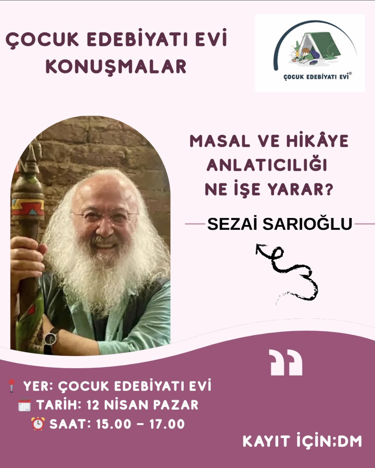 Sezai Sarıoğlu ile Masal ve Hikâye Anlatıcılığı Ne İşe Yarar? 12 Nisan’da Çocuk Edebiyat Evi’nde.