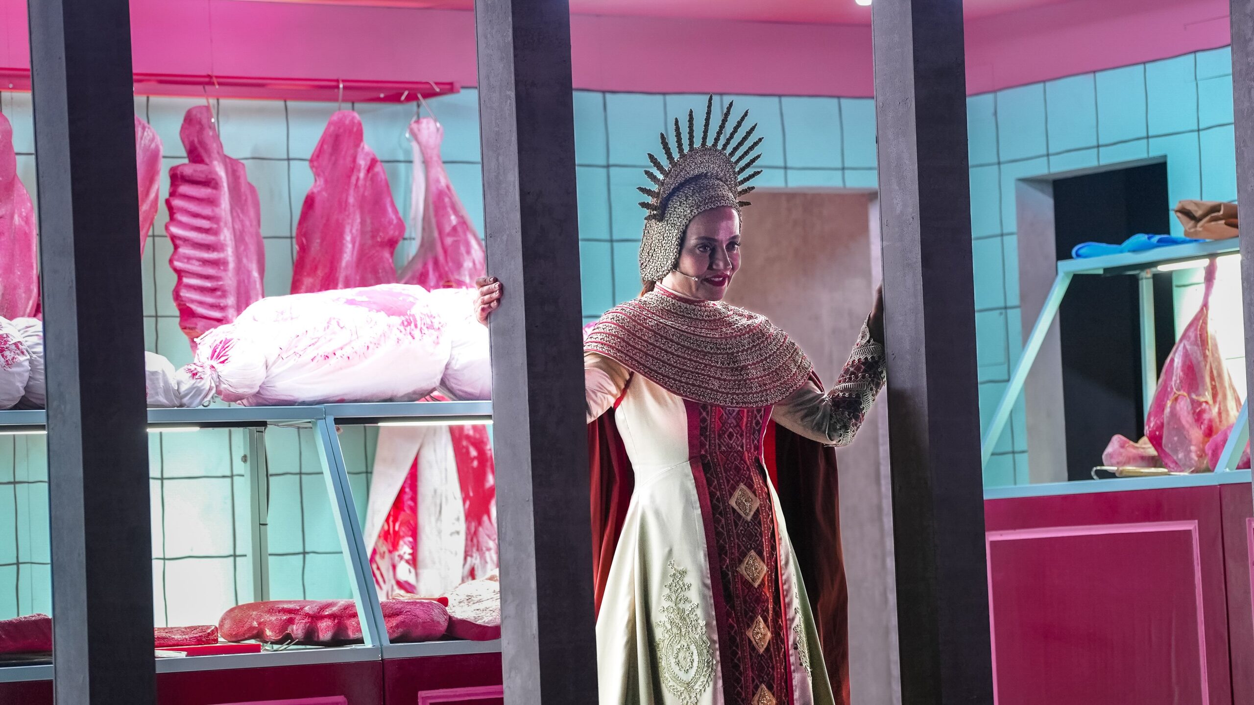 Farklı ve alışılmadık bir Shakespeare uyarlaması olan ‘Titus Kompleks’te, hayallerimizin sınırlarını zorlayan yönetmen Ersan Mondtag ile birlikte Olga Bach, canavar ruhlu bir Romalıyı, her şeyin kapitalizm mezbahasında alınıp satıldığı, müteahhitlerin ve sığır tüccarlarının dünyasına hapsediyor, tıpkı vahşi bir katliamın çözümlemesi gibi, hırsızlığın, ihanetin, sapkınlığın ve yamyamlığın hikayesini günümüz diliyle anlatıyor.
