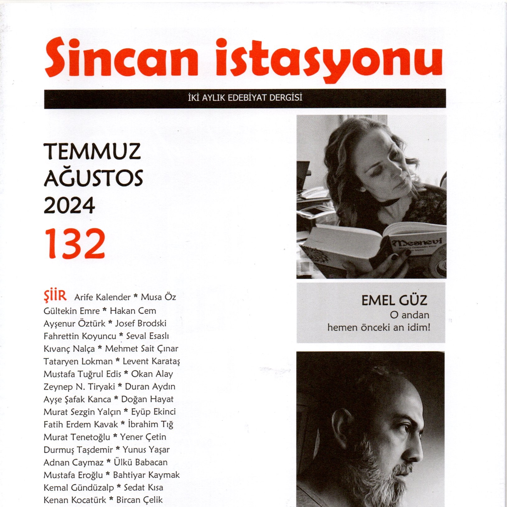 Derginin Temmuz-Ağustos 2024 tarihli 132. Sayısının kapağında Emel Güz ve Orhan Göksel adlı iki kardeş şair yer alıyor, iç sayfalarda şiirlerinden ve sanat görüşlerinden örnekler veriliyor.