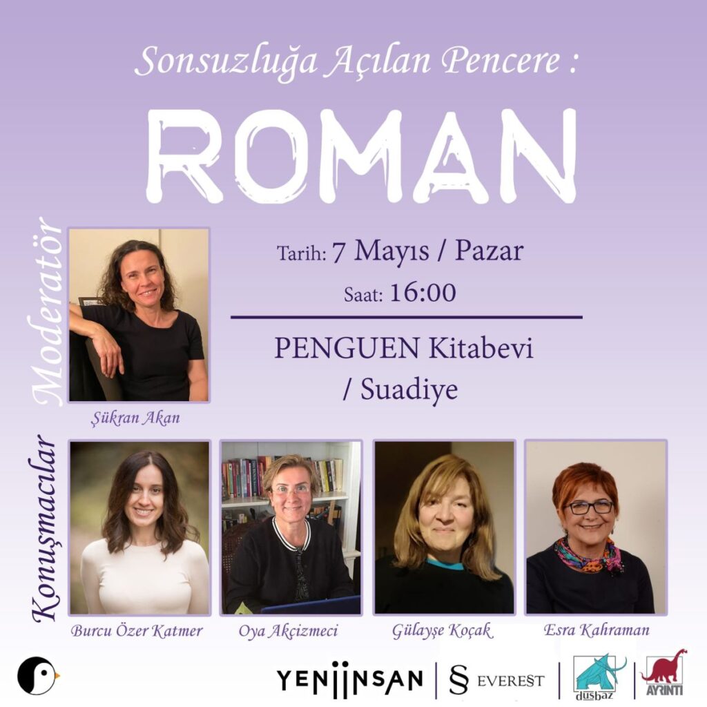“Sonsuzluğa Açılan Pencere: Roman” başlıklı söyleşi, 7 Mayıs 2023 Pazar 16.00’da Penguen Kitabevi Suadiye’de yapılacak.