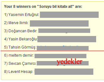 Kazananların ve yedek listesinde bulunan kişilerin 25 Mayıs 2012 cuma günü saat 12:00'a kadar [email protected] adresine, kargo bilgilerini (ad soyad, telefon ve adres) göndermeleri gerekmektedir.