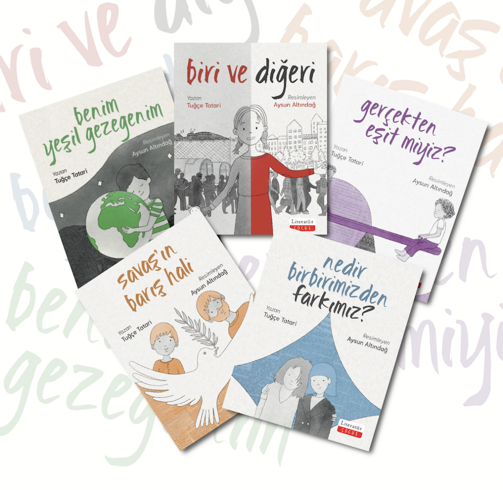 Tuğçe Tatari’nin çocuklara yönelik kaleme aldığı, Aysun Altındağ’ın resimlediği; Biri ve Diğeri, Benim Yeşil Gezegenim, Gerçekten Eşit miyiz?, Savaş’ın Barış Hali ve Nedir Birbirimizden Farkımız? isimli kitaplardan oluşan, Literatür Çocuk Yayınevi tarafından yayımlanan bu özel dizi, kitapsever çocuklarla buluşuyor. Beş kitaptan oluşan dizi, yeni neslin empati kurma yeteneğini geliştirmeyi, açık fikirli ve topluma duyarlı birer insan olmasını hedefliyor ve okumayı yeni öğrenen çocuklara bu maceralarında eşlik ediyor.