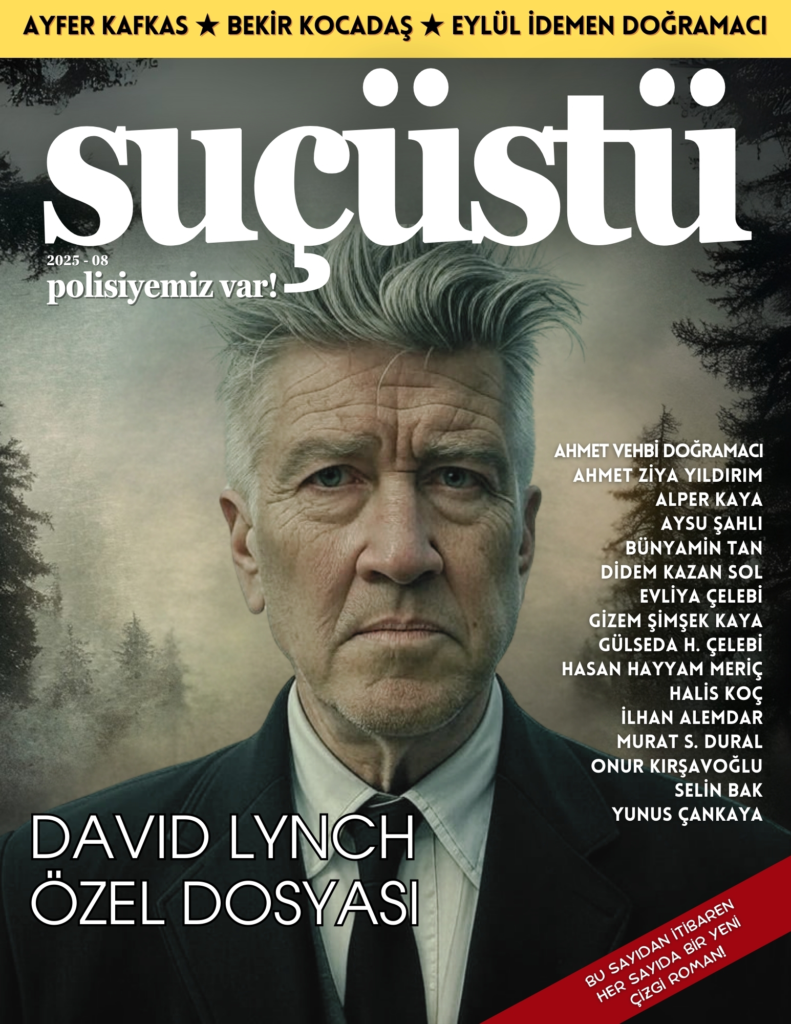2024 yılının Ocak ayından bu yana iki aylık periyotlarla www.sucustu.net adresinde yayınlanan dijital dergi SUÇÜSTÜ, geçtiğimiz aylarda kaybettiğimiz yönetmen David Lynch’e dair hazırlanan özel bir dosya içeriğinin de yer aldığı 8. Sayısıyla okuyucuların karşısına çıktı. Üstelik bu sayıdan itibaren her sayıda tam macera çizgi romanlar da sizi bekliyor!