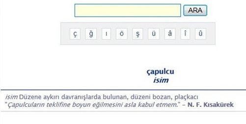 Daha önce kelime örnek olarak, Sait Faik Abasıyanık’ın, “Bütün çapulcu alayı başka kasabalara gittiler” cümlesi içinde yer alırken, şu an Necip Fazıl Kısakürek imzalı, “Çapulcuların teklifine boyun eğilmesini asla kabul etmem” cümlesinde kullanılıyor.