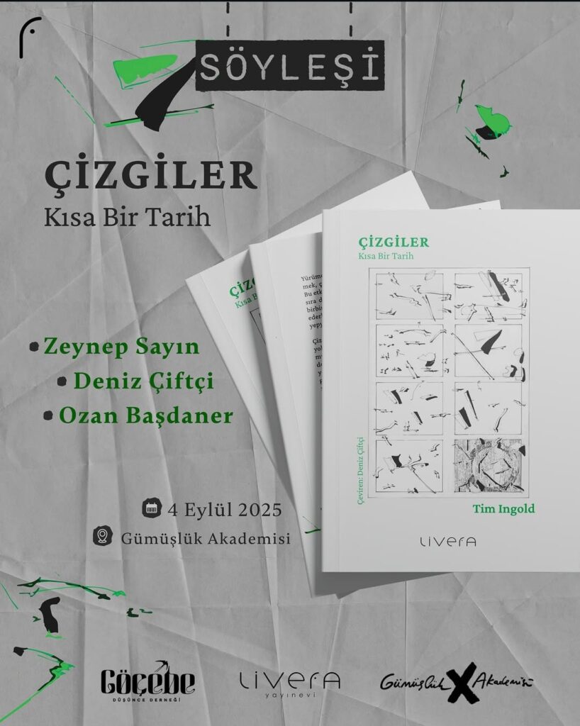 Tim Ingold’un Çizgiler’ini Gümüşlük Akademisi’nde konuşulacak. Göçebe Düşünce Derneği’nin düzenlediği kamplar dahilinde gerçekleşecek olan etkinlikte Zeynep Sayın, Ozan Başdaner ve Deniz Çiftçi ile çizginin karmaşık tarihini tartışılacak. Söyleşi 4 Eylül’de gerçekleşecek.