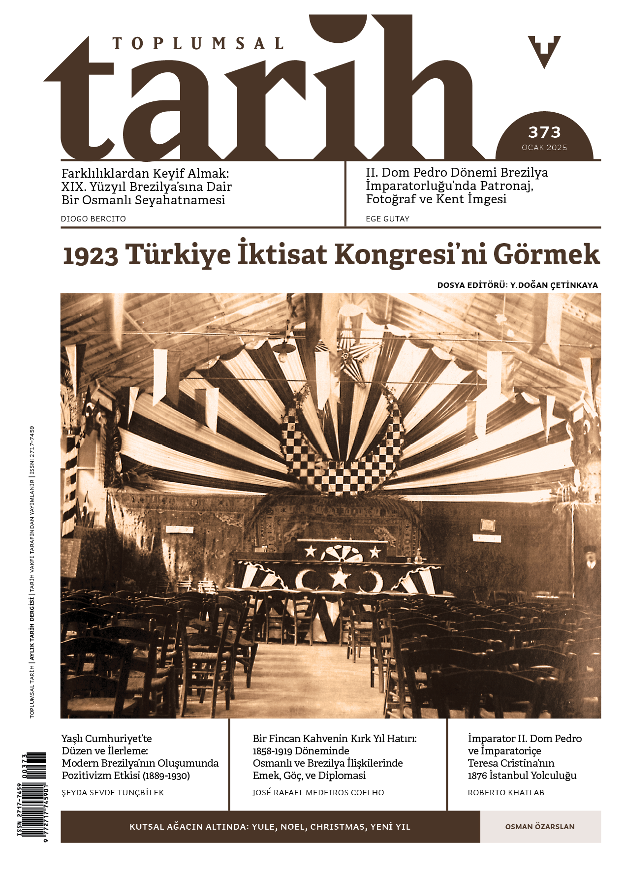 Bu sayımızda ülkemizde pek bilinmeyen bir coğrafyaya, Güney Amerika’ya uzanıyoruz. Ege Gutay ve José Rafael Medeiros Coelho editörlüğündeki “Brezilya Tarihi ve Brezilya-Osmanlı İlişkileri” dosyamız altı makaleden oluşuyor.