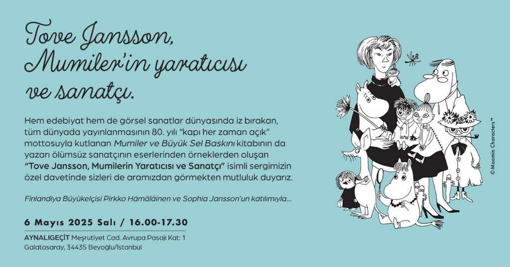 Ayrıntı Yayınları’nın çocuk kitapları markası Dinozor Çocuk, Finlandiya Büyükelçiliği ve Home of Moomin Museum Tampere, Finland ortaklığında İstanbul’da sanatseverlerle buluşan sergi, sanatçının eskizleri, karikatürleri, kitap illüstrasyonları ve tablolarından oluşuyor.