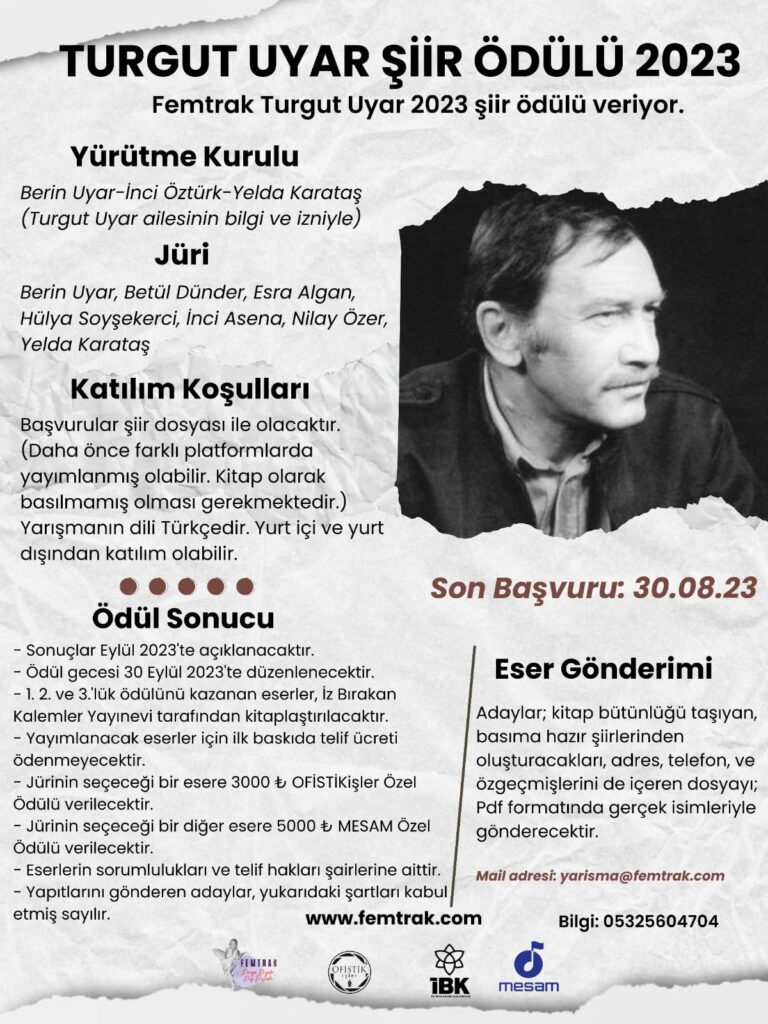 Femtrak’ın düzenlediği Turgut Uyar Şiir Ödülü için son başvuru tarihi 30 Ağustos olarak açıklandı.
