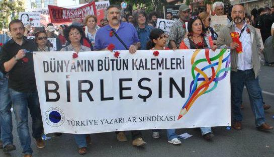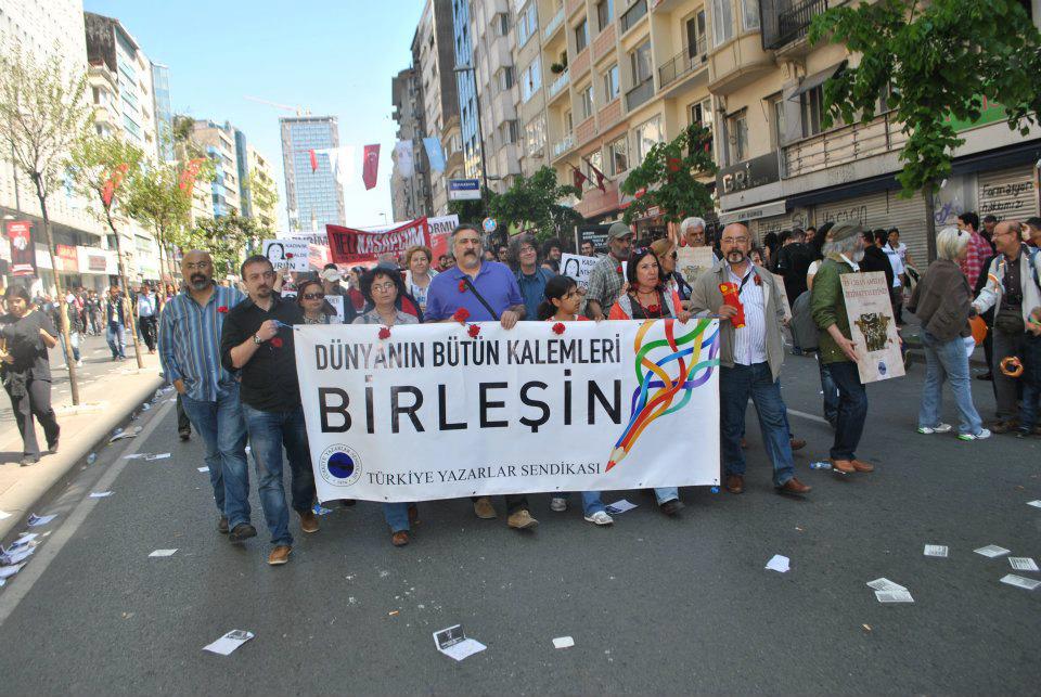 Bu gruplardan biri de Türkiye Yazarlar Sendikası idi. Şişli'de toplanan coşkulu grup, “Dünyanın bütün kalemleri birleşin!” pankartı arkasında, miting alanı olan Taksim Meydanı'na doğru yürüyüşe geçti ve taleplerini dile getirdi.