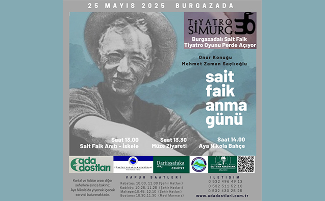 Sait Faik’in 71. ölüm yıldönümünde “Anma töreni” 25 Mayıs 2025 Pazar günü saat: 13.00’te Burgazada’da gerçekleştirilecek.