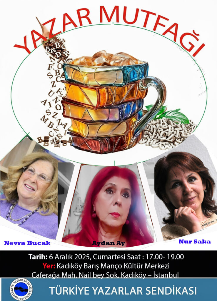 Türkiye Yazarlar Sendikası, “Yazar Mutfağı” adlı çalışmasına yeni dönemde yeniden başlıyor. Etkinlik 6 Aralık 2025 Cumartesi günü Kadıköy Barış Manço Kültür Merkezi gerçekleştirilecek.